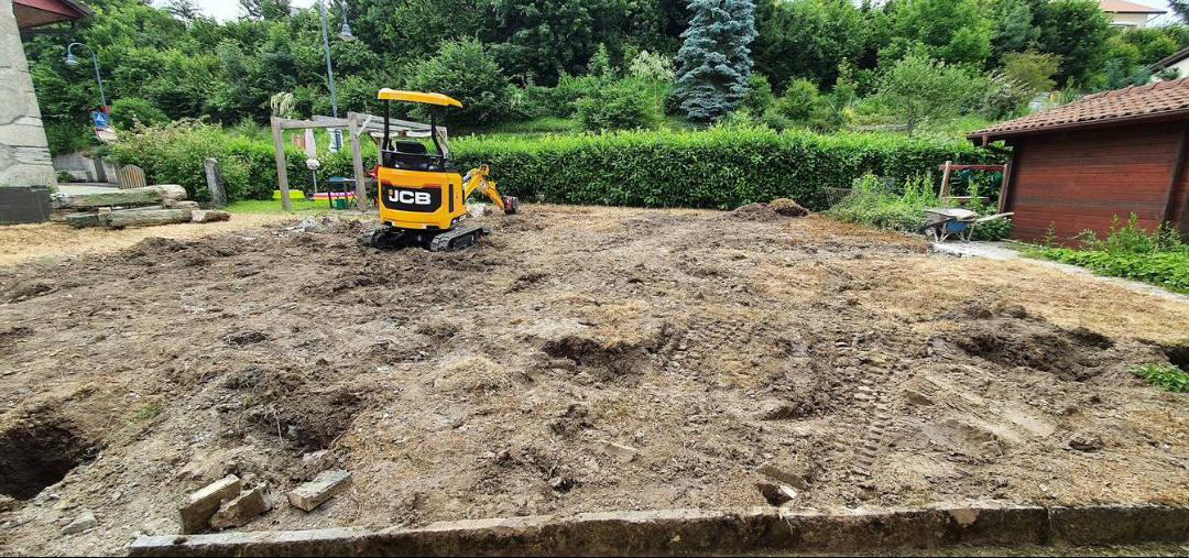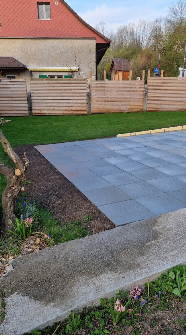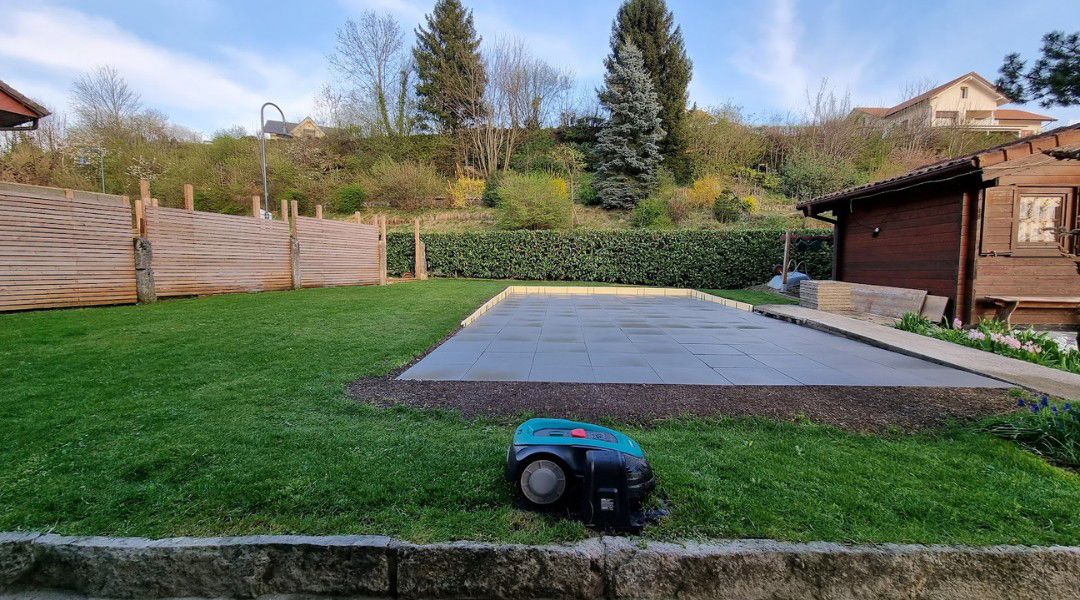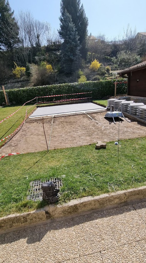 Création d'une zone dallée pour accueillir une piscine.